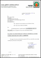 Plastic Water & Chemical Tanks and the PUFF Insulated A.B.S. Doors have the registration & recognition of I.S.I., RAILWAYS, M.E.S., D.G.S.&D., B.E.S.T., B.M.C., P.M.C. & Several other agencies.